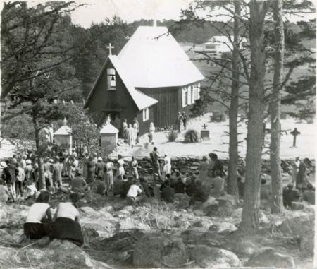 Ämnesord: kyrkobyggnader, sommar, besökare, kyrkobesök |