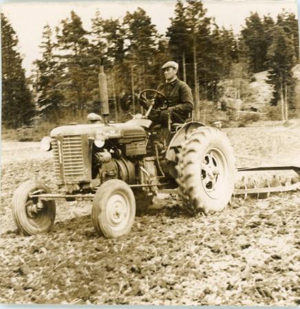 Ämnesord: jordbrukare, traktorer, jord- och skogsbruk, harvning |
